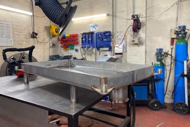 To complete the tray, studs were welded in position using a stud welder, and finally the finished tray was thoroughly degreased prior to dispatch.